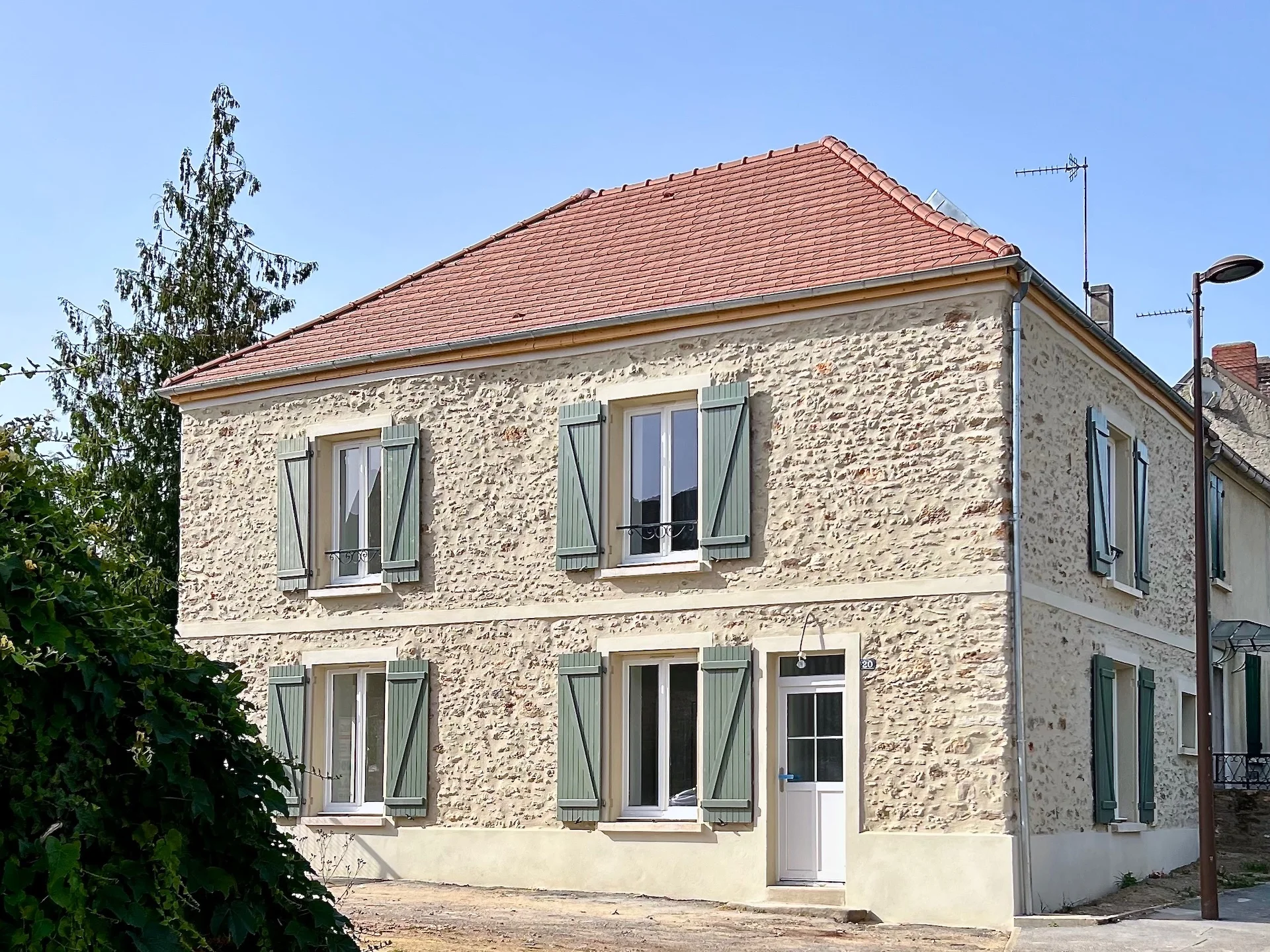 Mission : Rénovation tous corps d’état d’une briarde (charpente, couverture, menuiseries, plâtrerie, isolation, électricité, plomberie, CVC, revêtements de sol, mobilier, aménagement paysager, clôture)